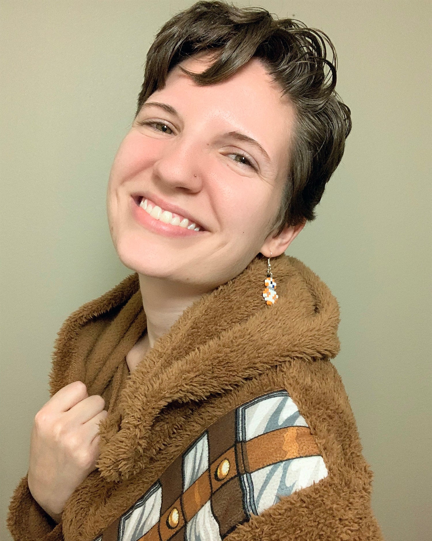 Self-taught and with a deep appreciation for the silly things in life, Bekah finds inspiration for her art in her favorite stories and gives them a clever twist any time she can. Standing at nearly 6ft tall, she adopted the name "Chewbekah" to fulfill her love for a pun while representing her nerdy side. When she is not drawing, you can find her reading, sewing, playing cozy video games, building Lego, or snuggling her cats while watching a movie/TV show with her husband. She could not be more grateful for your support. Thank you.