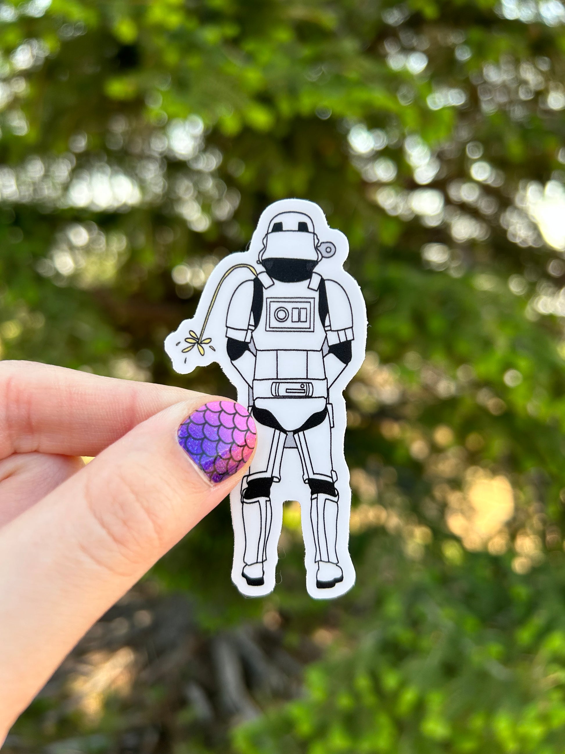 This sticker is 3 inches on its longest side and is made with waterproof matte vinyl. It is dishwasher safe and weatherproof for your convenience!