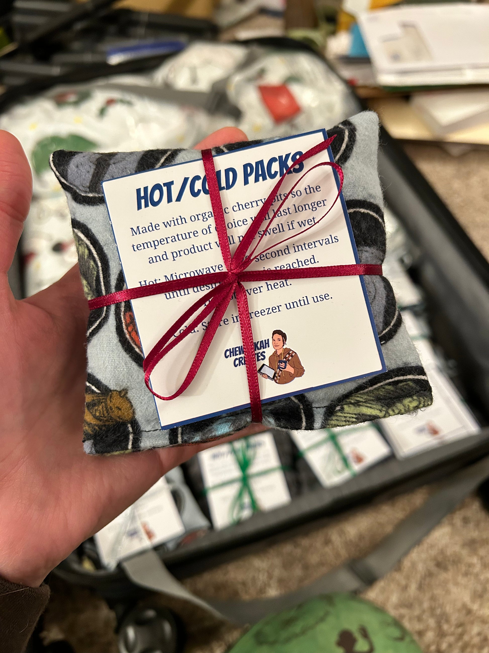 Made with organic cherry pits which hold both heat and cold for longer than rice and other alternatives. Plus, you don't have to worry about getting it wet since cherry pits don't swell like rice does! Comes with instructions for use.