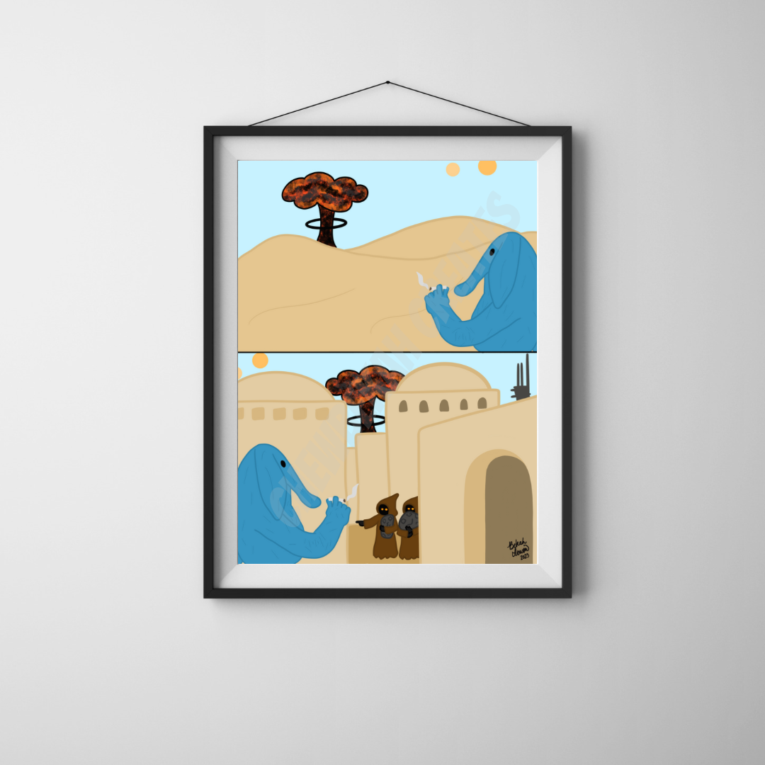 This print measures 8x10 inches and was printed on light glossy cardstock. There is a thin white border around the art to account for framing. Artist will sign prints on request.
